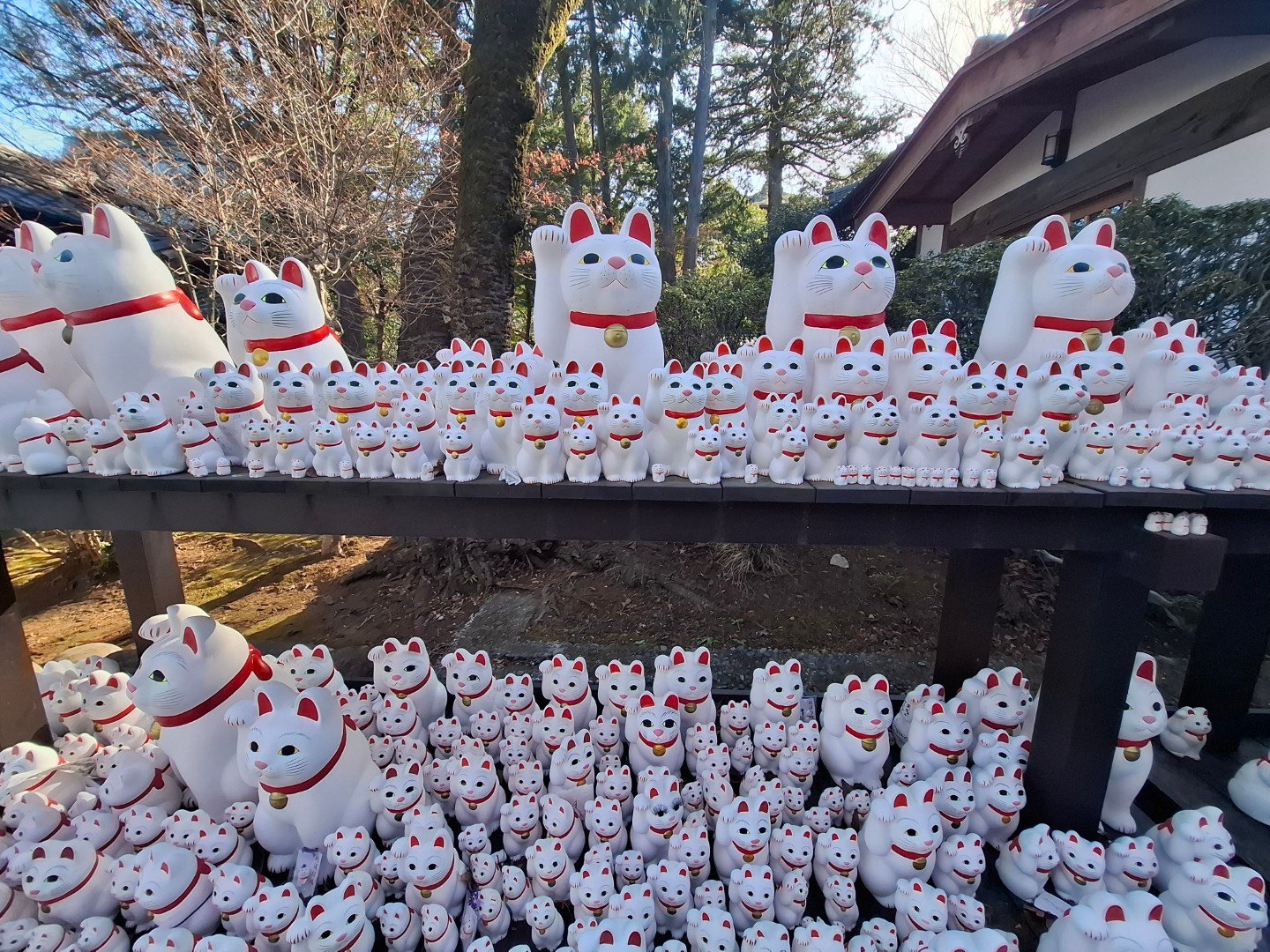 論曰:今入豪德寺,最引人入勝者,莫過於招福殿旁,奉納之萬千白磁貓像。大者及半身,小者如拇指,皆舉右爪,頸繫紅鞥,端坐於木架之上。世人稱之為「招財貓」或「招福貓」,以為求財賜福之神靈。今當以三自性之理,一一剖析此文化現象。